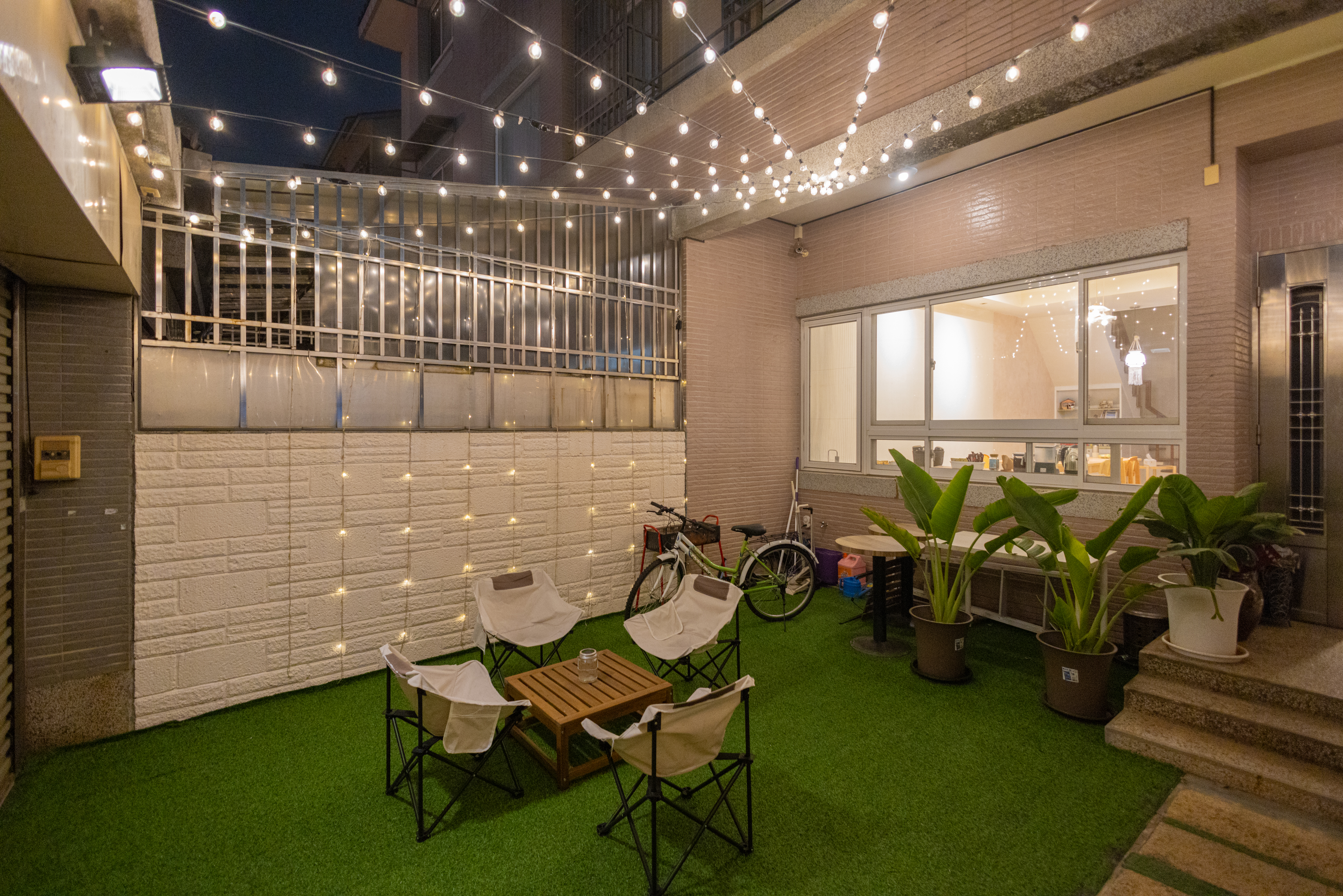 户外花園是一處綠意盎然、放鬆身心的空間。白天可以在陽光下小憩,晚上則成為星空下的秘密角落。另外,花園也開放給包棟旅客可以在這裡烤肉、聊天,把旅行變成一場熱鬧的派對。無論是與朋友相聚,或是單純享受片刻寧靜,都能帶來愉快而難忘的回憶。